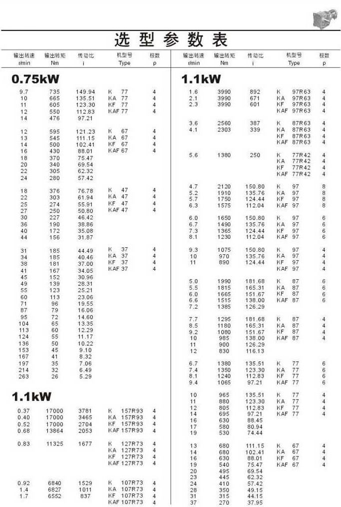 选型参数表0.75kW(续)和1.1kW