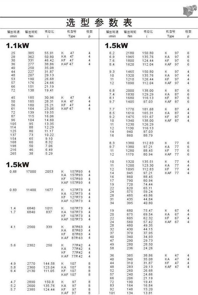 选型参数表1.1kW(续)和1.5kW