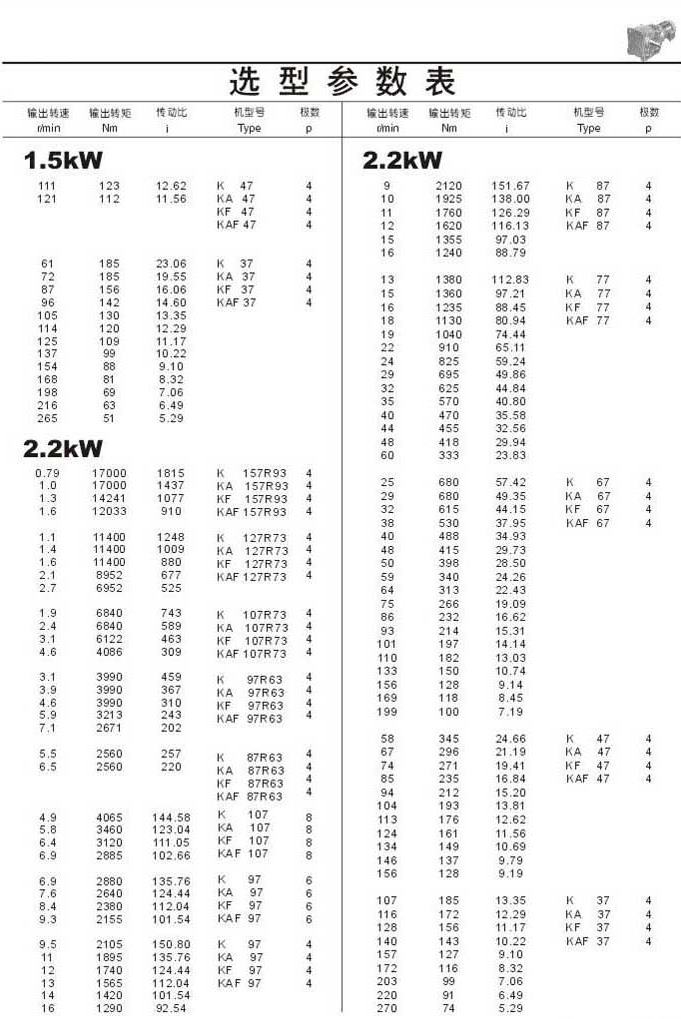 选型参数表1.5kW(续)和2.2kW