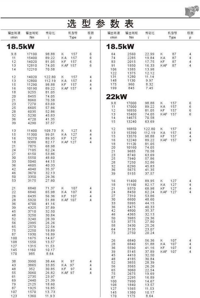 选型参数表18.5kW,22kW