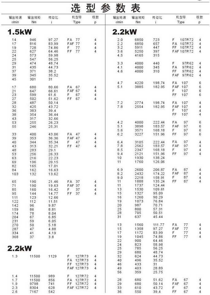 选型参数表1.5kW(续),2.2kW