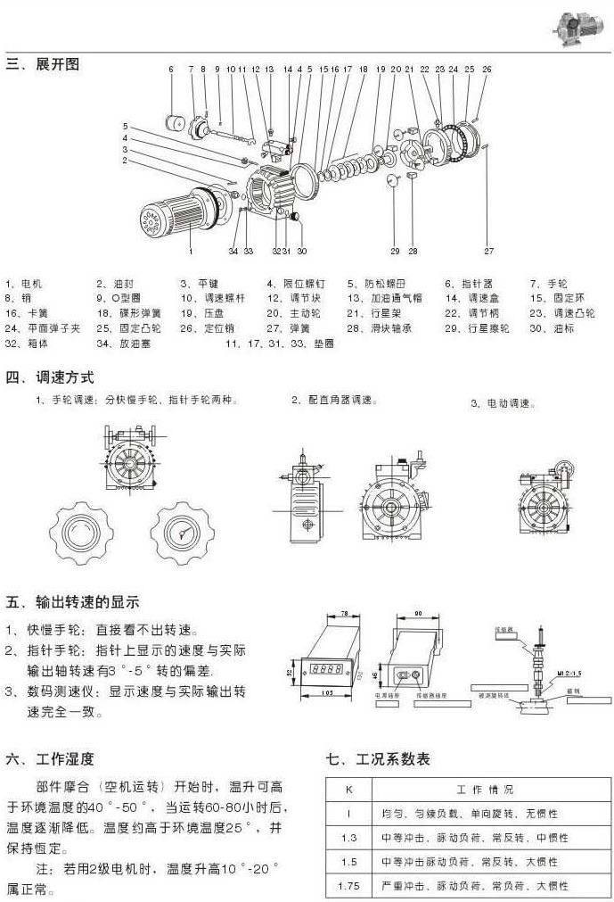 结构展开图调速方式输出转速的显示工作湿度工况系数表