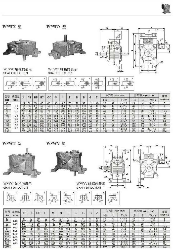 WPWX, WPWO,WPWT,WPWV型型号参数图表