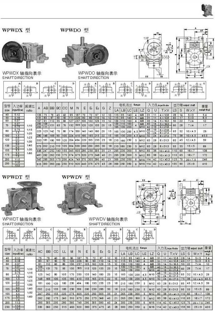 WPWDX,WPWDO,WPWDT,WPWDV型型号参数图表