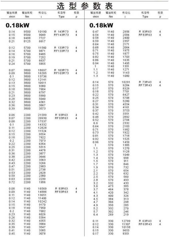 选型参数表0.18kW 46