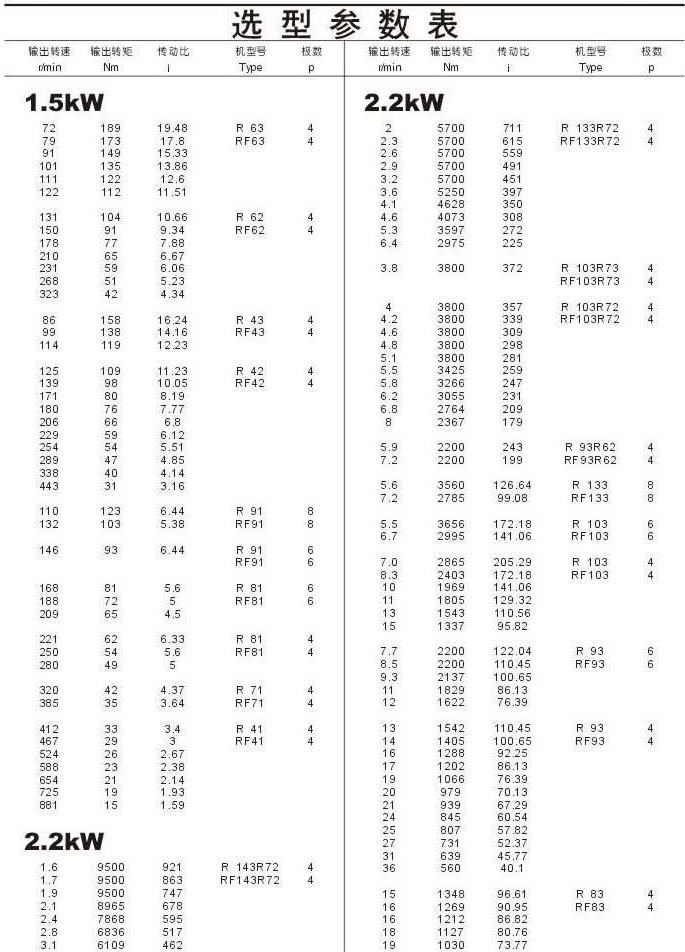 选型参数表1.5kW(续),2.2kW