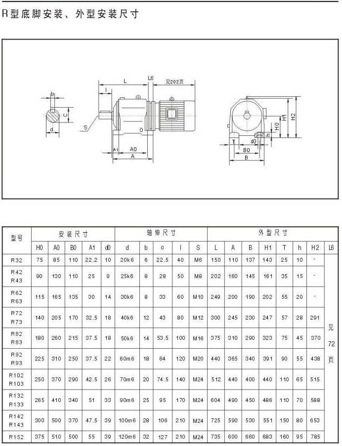R型底脚安装,外型安装尺寸
