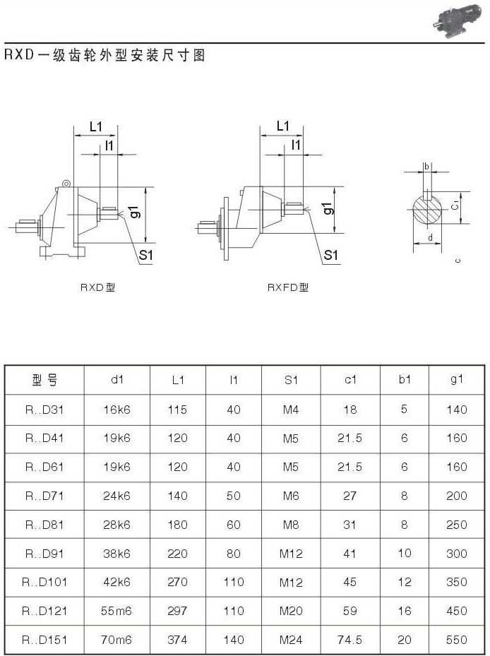 RXD一级齿轮外型安装尺寸图表