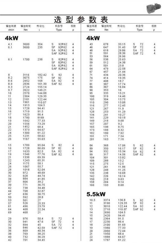 选型参数表4kW(续)和5.5kW